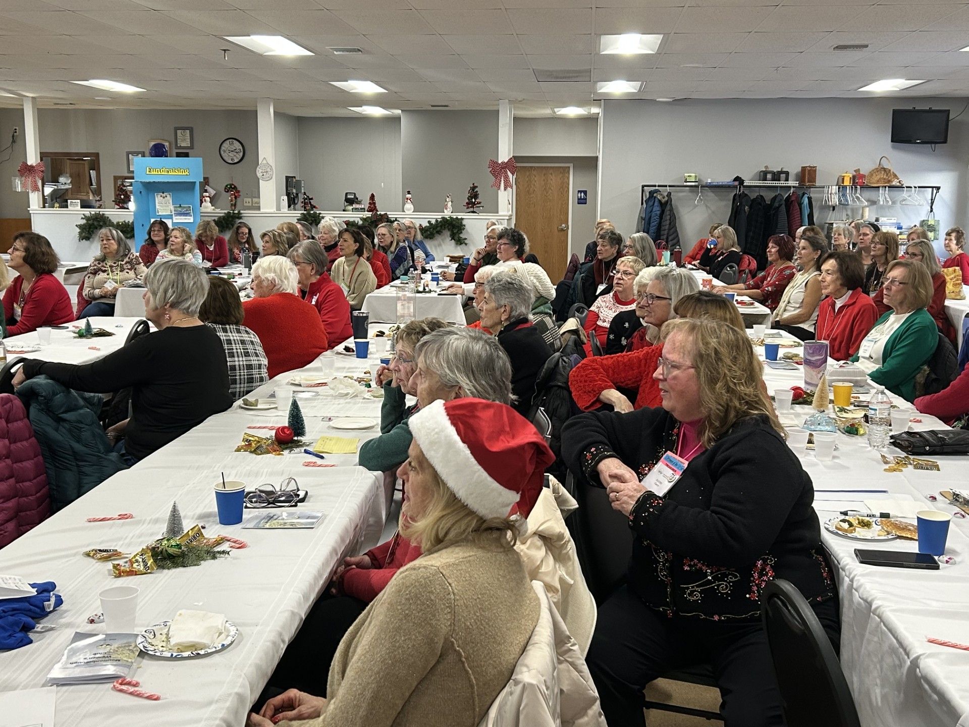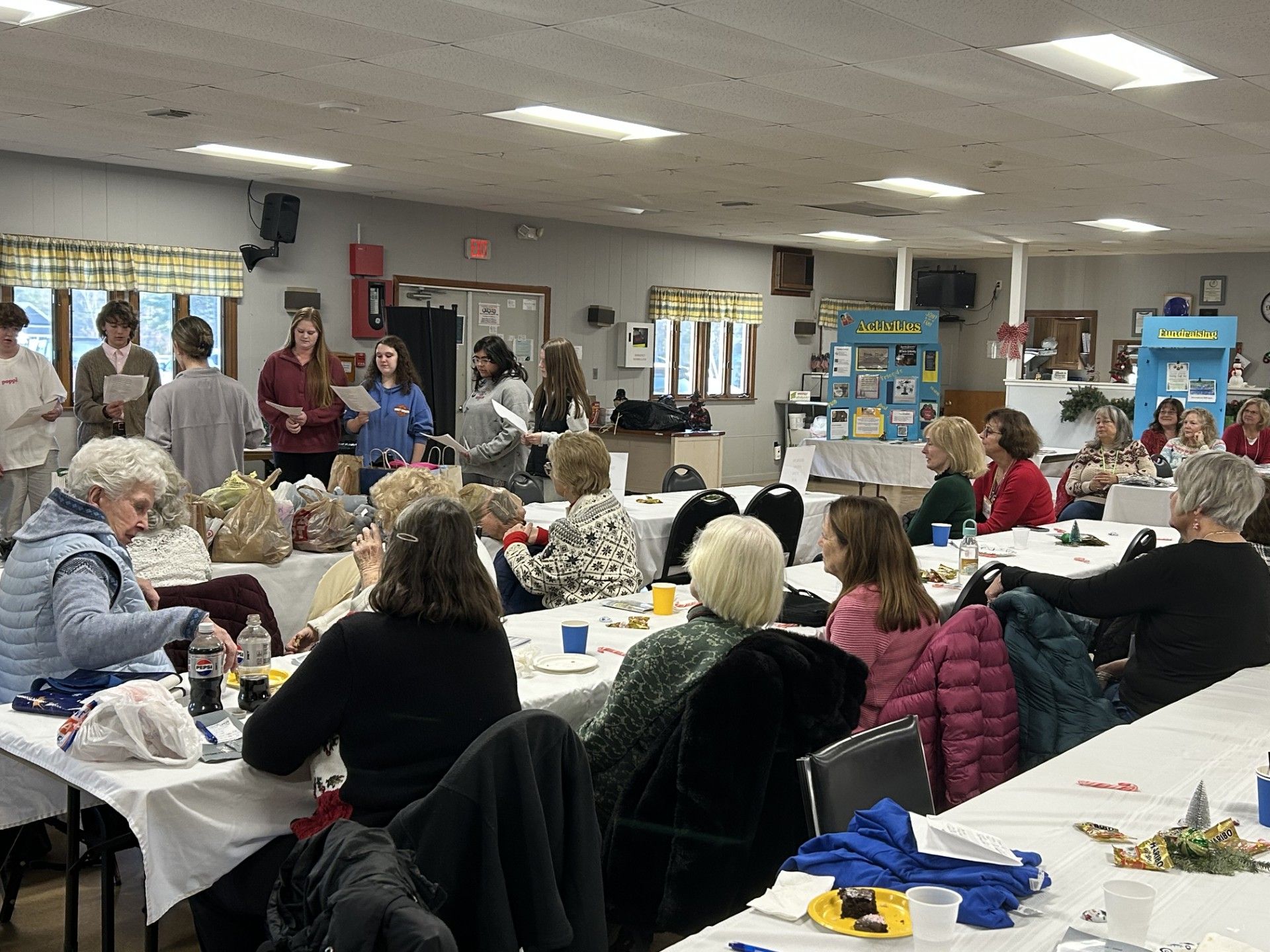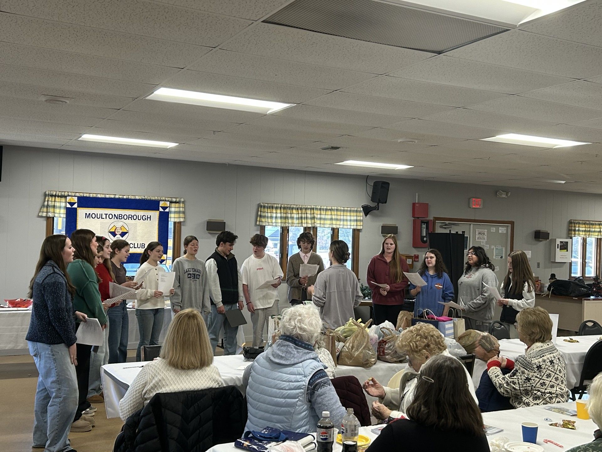 A festive December 1 Moultonborough Women's Club meeting attracted 78 members plus guests to enjoy the voices of the Moultonborough Academy Chorus and to celebrate members' generous donation of holiday gifts for local children and knitted items for Meredith Village Savings Bank's annual Mitten Tree. ~ Susan Reepmeyer