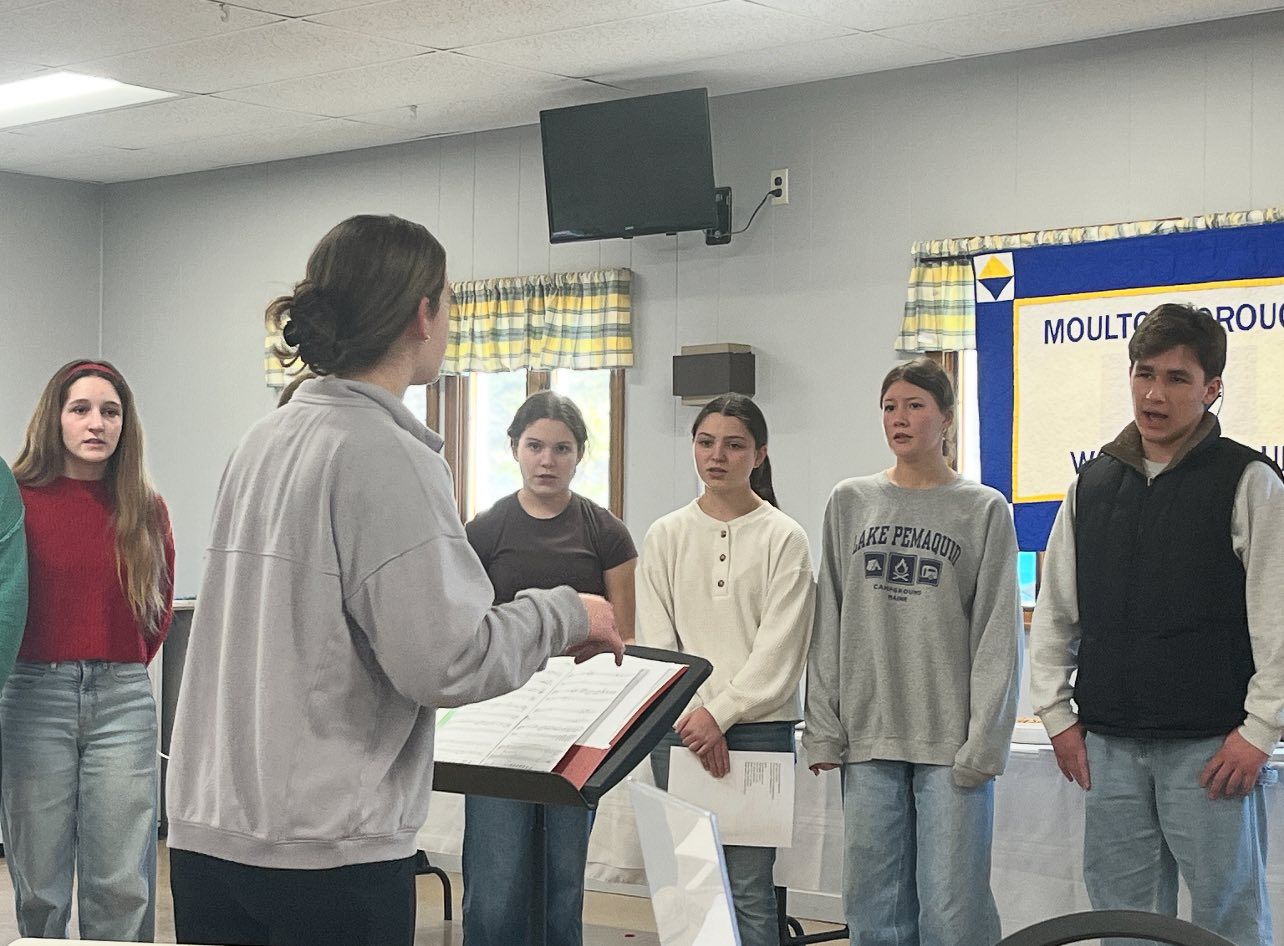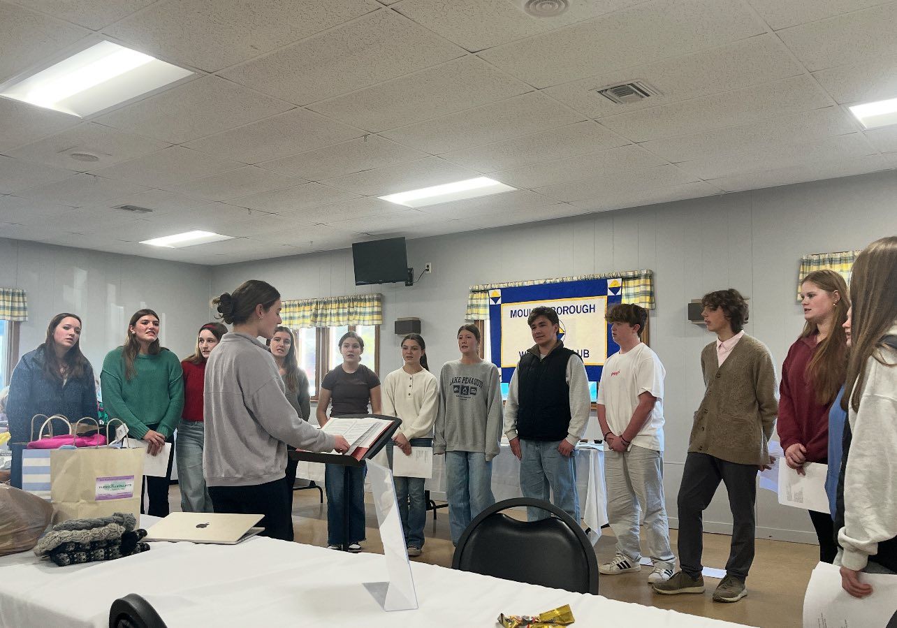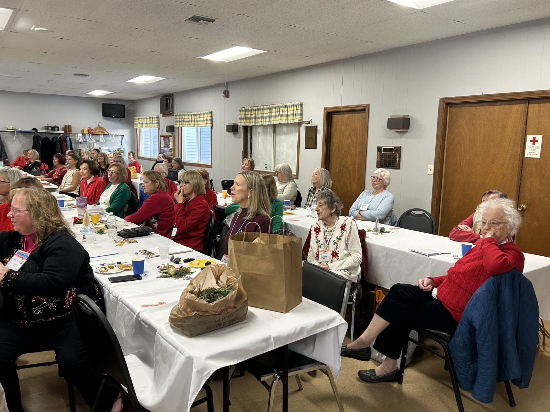 A festive December 1 Moultonborough Women's Club meeting attracted 78 members plus guests to enjoy the voices of the Moultonborough Academy Chorus and to celebrate members' generous donation of holiday gifts for local children and knitted items for Meredith Village Savings Bank's annual Mitten Tree. ~ Susan Reepmeyer
