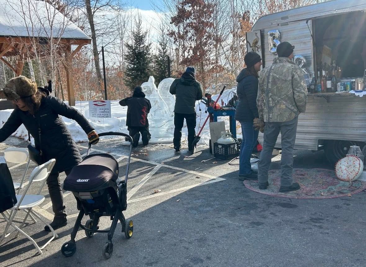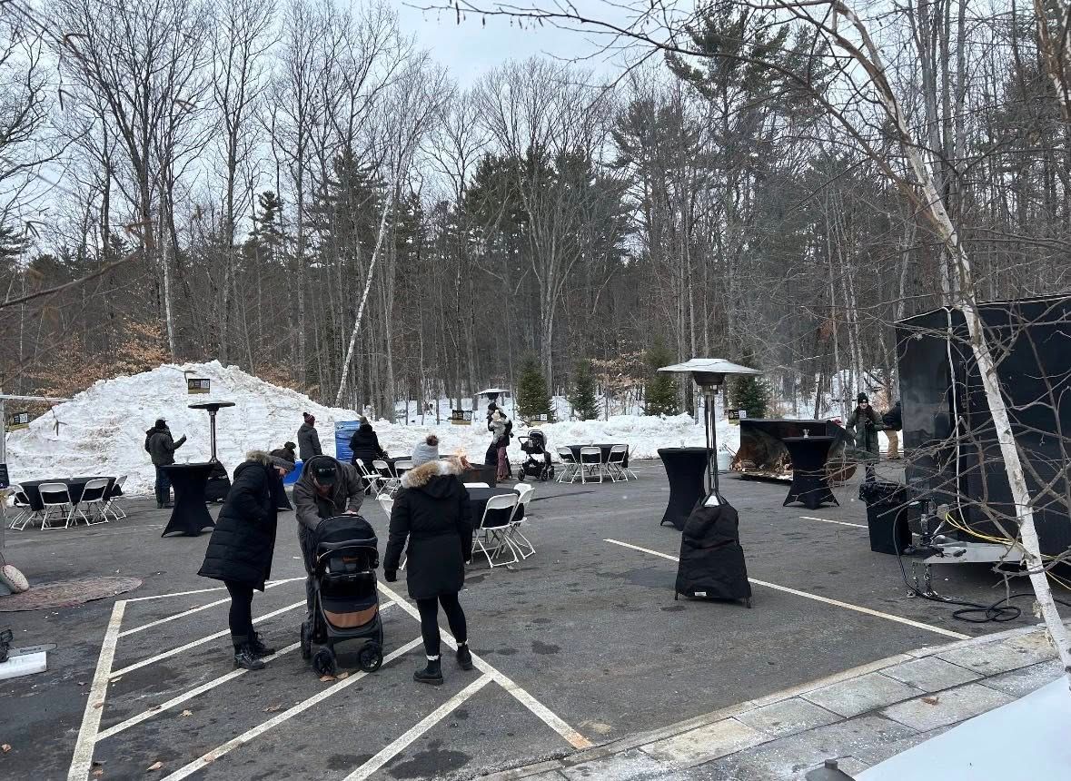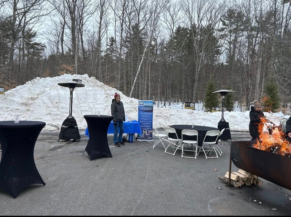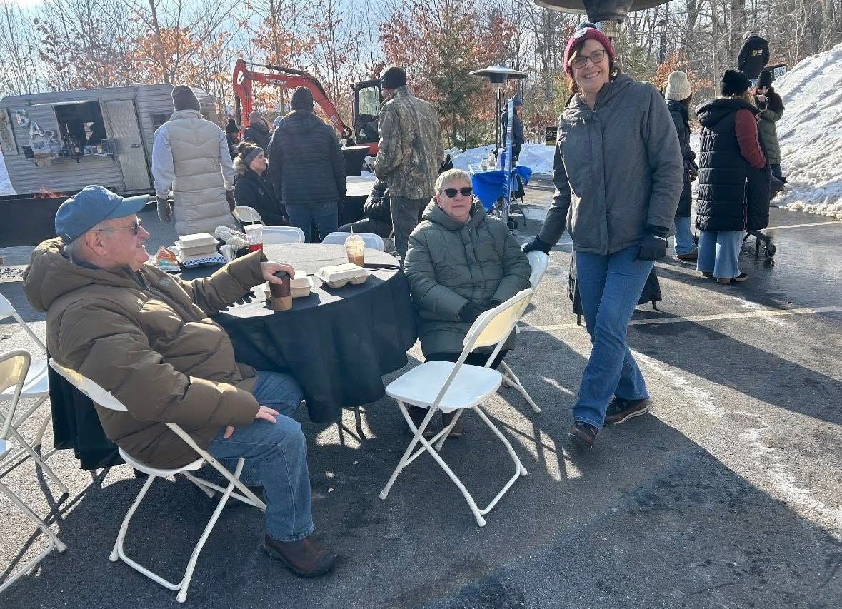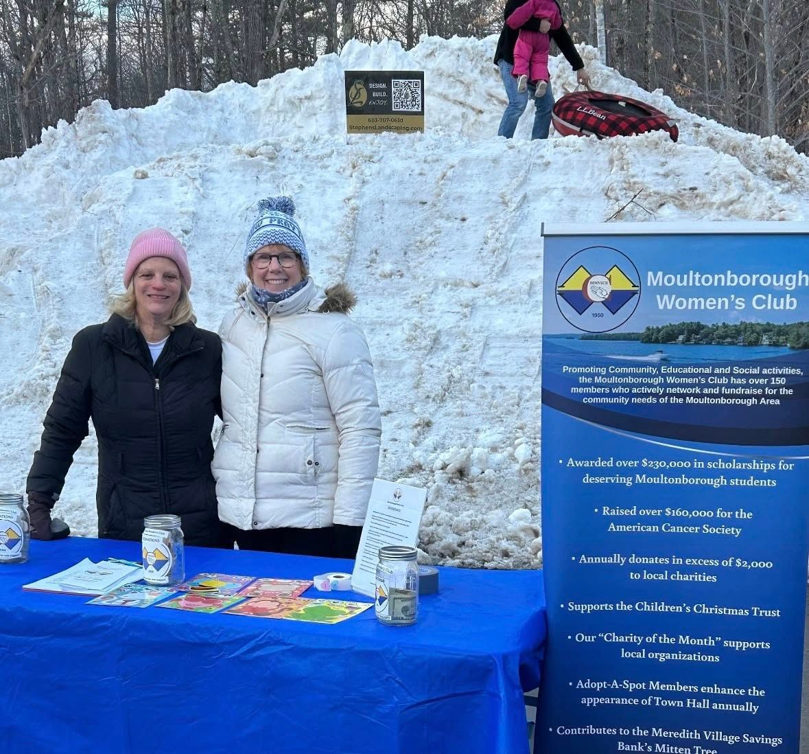 The weather was fine and the activities planned by Brie Stephens and her team provided a lively afternoon. Food and cocktail trucks, ice carving and sledding with event goers keeping warm by a few small bonfires. Guesses were made on the date and time of Ice Out! The Women’s Club is grateful to be the beneficiary of donations from this event. Libby Reichlen, Jayne Savage and Wendy Monbouquette, bundled up for the day, greeting everyone, sharing the accomplishments of MWC. Sticker pages were handed out to the children. Several Club members attended and joined in the fun!